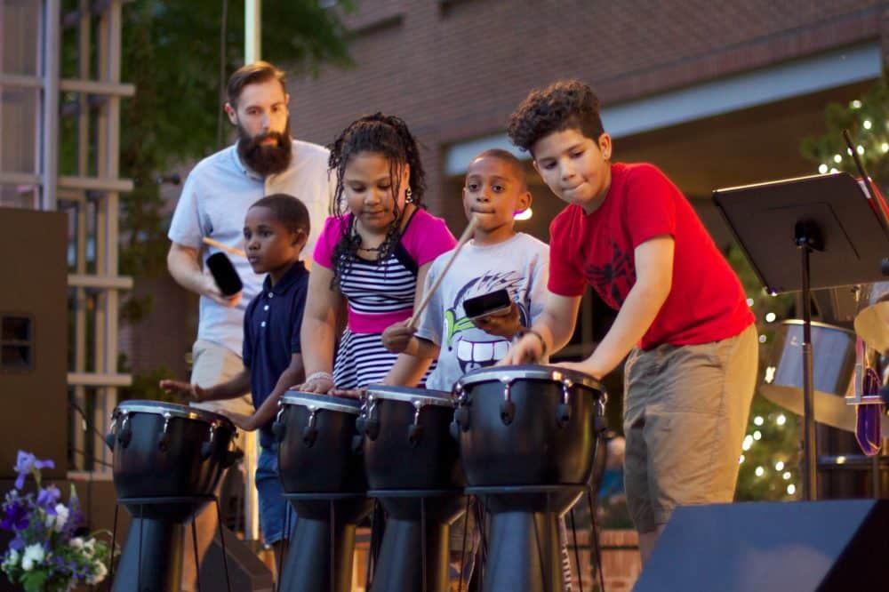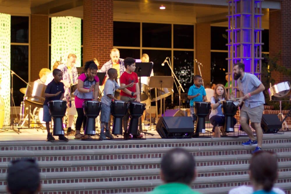 We want to thank MU STEEL for inviting our students to join them on stage at MEDA’s World Market Night in downtown Lancaster. This unique and exciting ensemble specializing in traditional pan music from Trinidad and Tobago was founded in 2017 by director James Armstrong as part of Millersville University’s world music curriculum. The opportunity for our students to jam with them on stage for the first “Music Friday” of the season was tremendously positive!