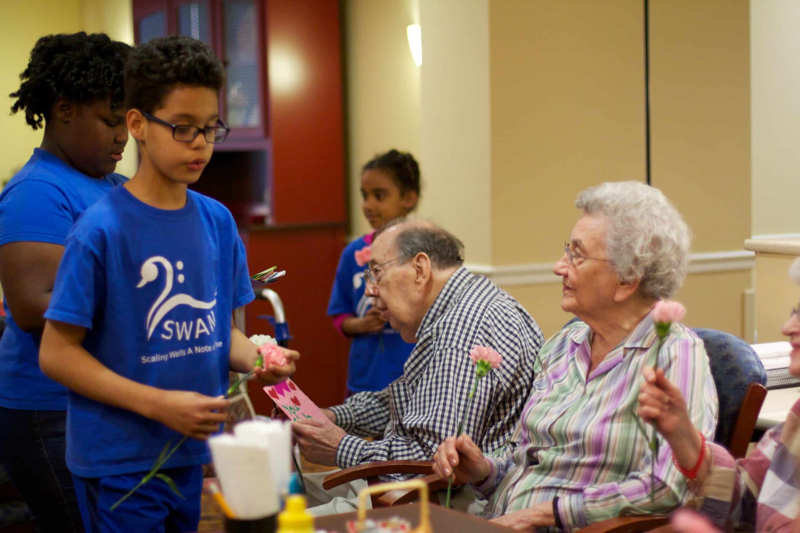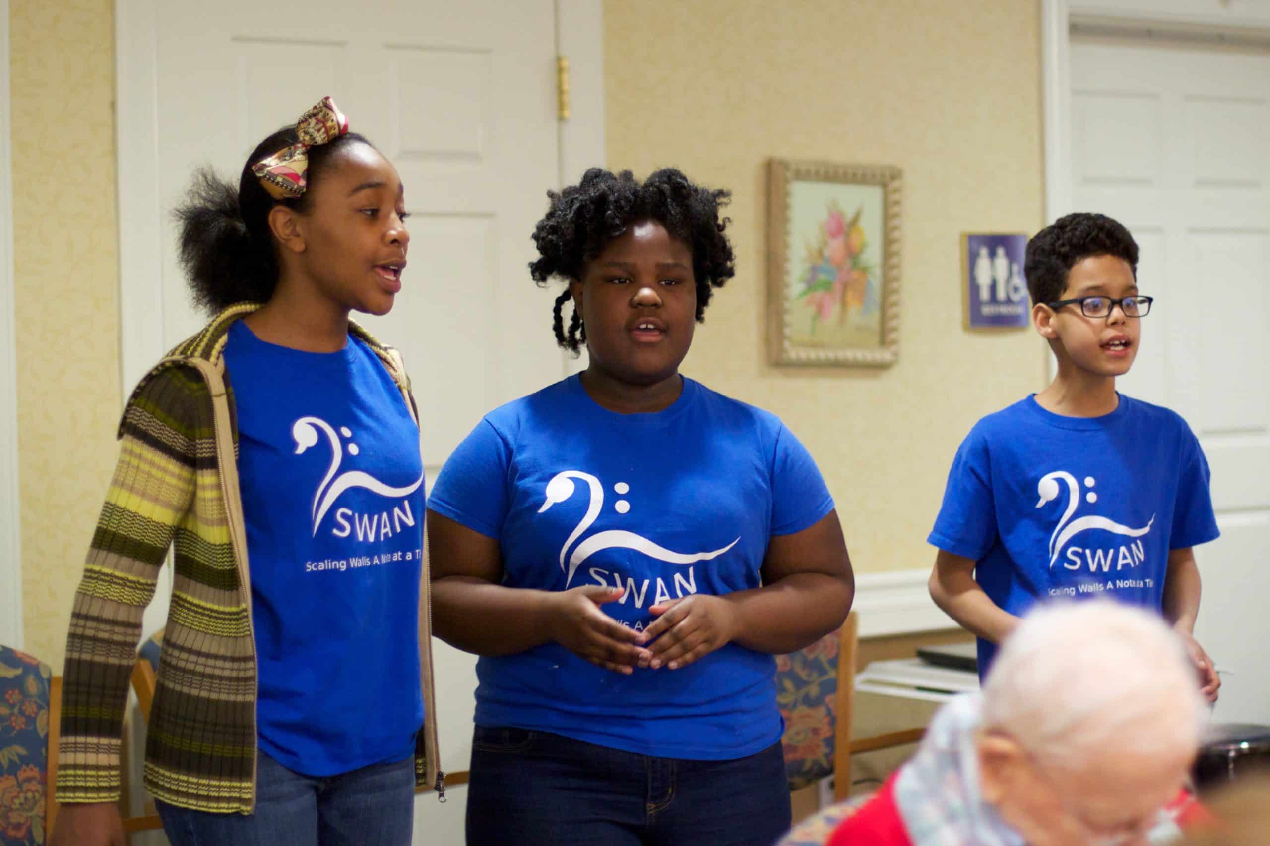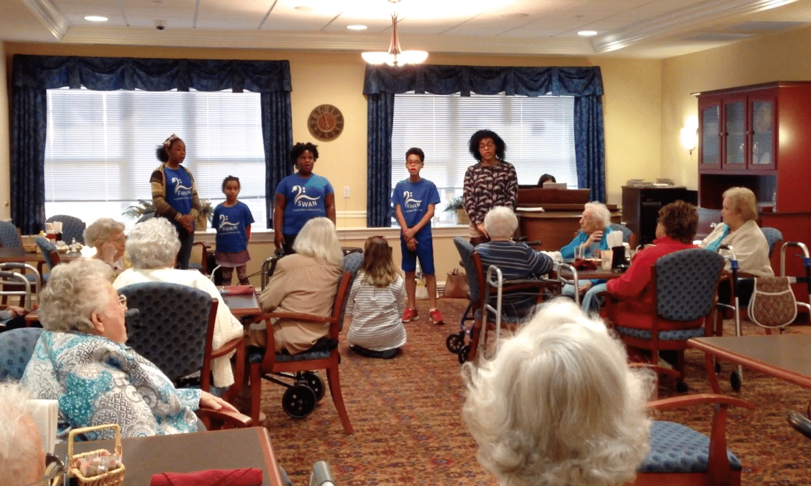 On March 11 SWAN students gathered in the lobby of Brethren Village Retirement Community to focus on the task before them. They came to brighten the spirits of residents with the gift of song.